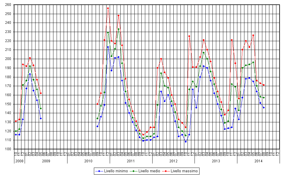 | Dicembre | 166 | 175 | 191 | 0,41 | 0,43 | 0,47 | 7,0 | 10,3 | 14,7 |